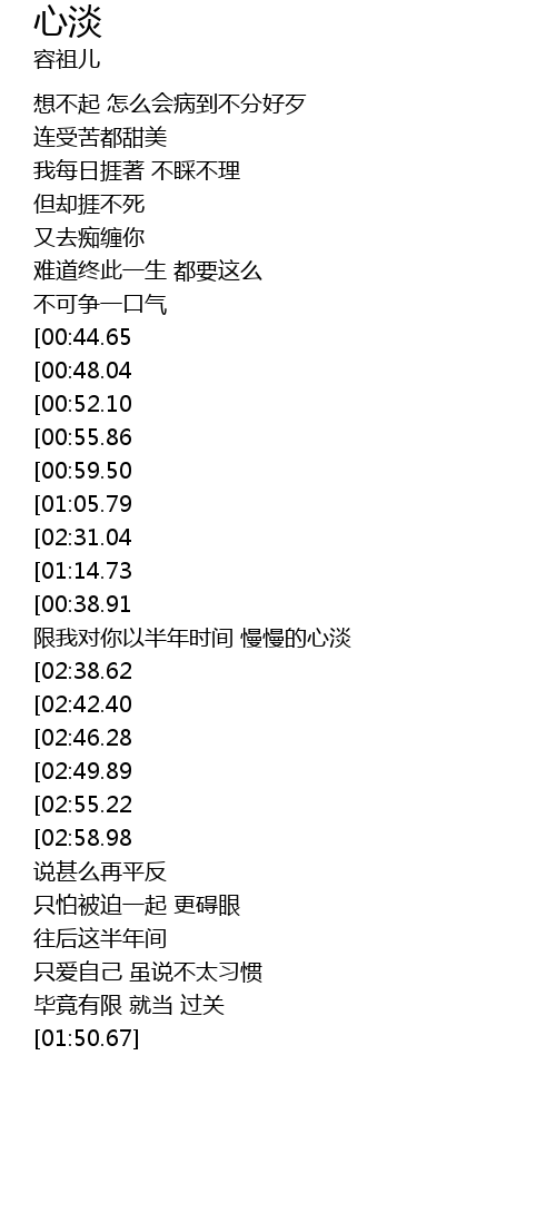 | [02:34.94] | 限我对你以半年时间 慢慢的心淡 |