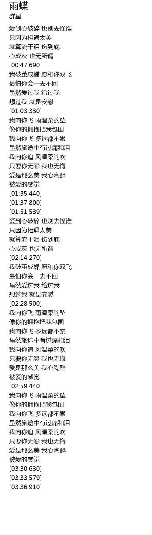 | [02:15.530] | 我破茧成蝶 愿和你双飞 |