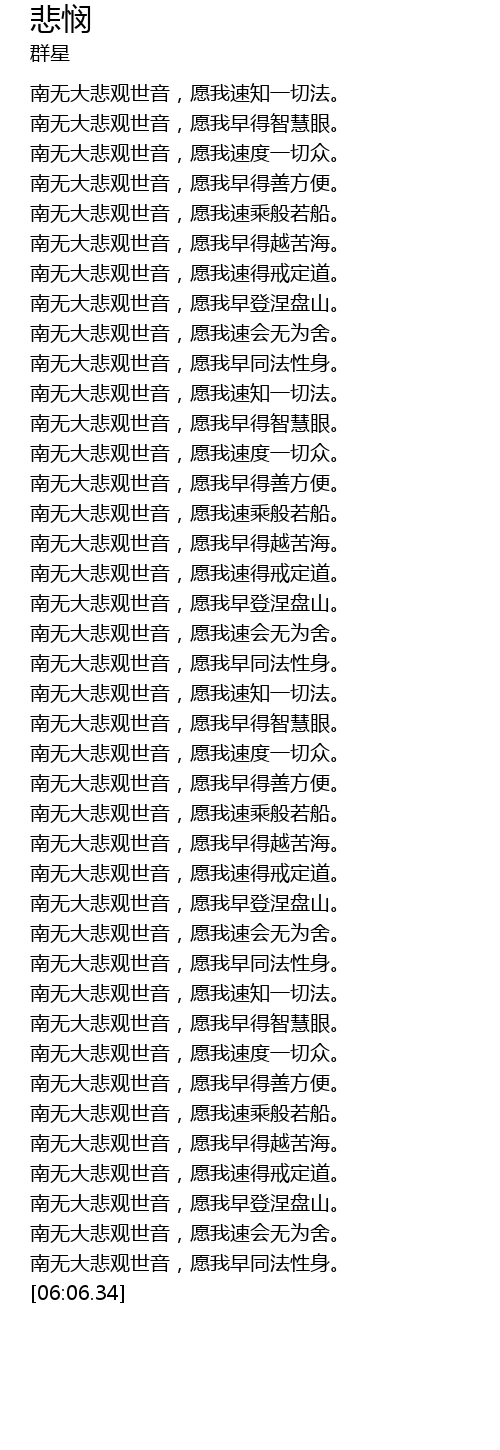 | [05:03.76] | 南无大悲观世音,愿我速度一切众。 |