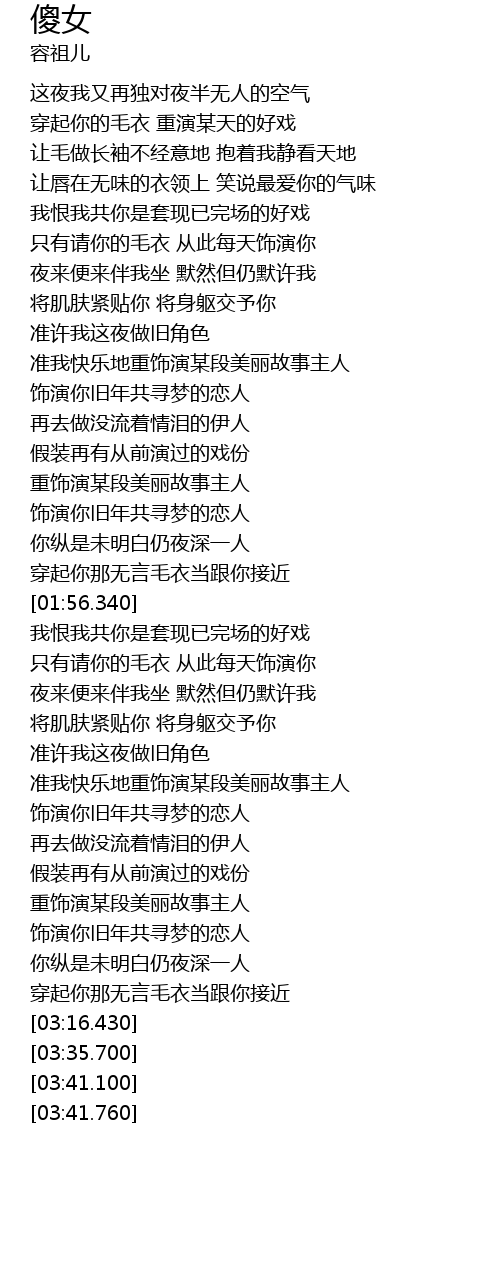 | [01:47.739] | 你纵是未明白仍夜深一人 |