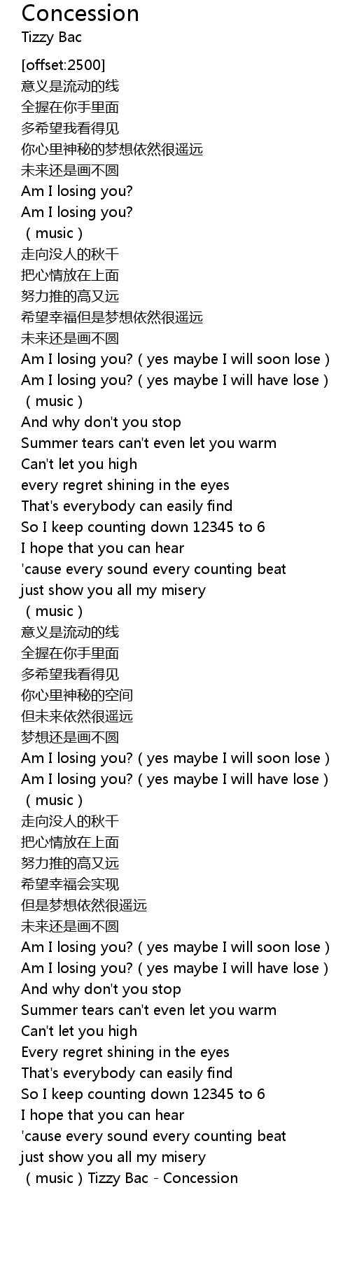 | [01:50.26] | Am I losing you?(yes maybe I will have lose) |