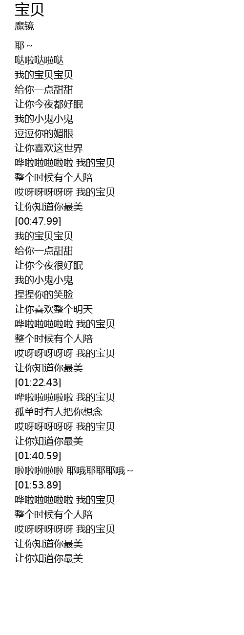 | [01:23.76] | 哗啦啦啦啦啦 我的宝贝 |