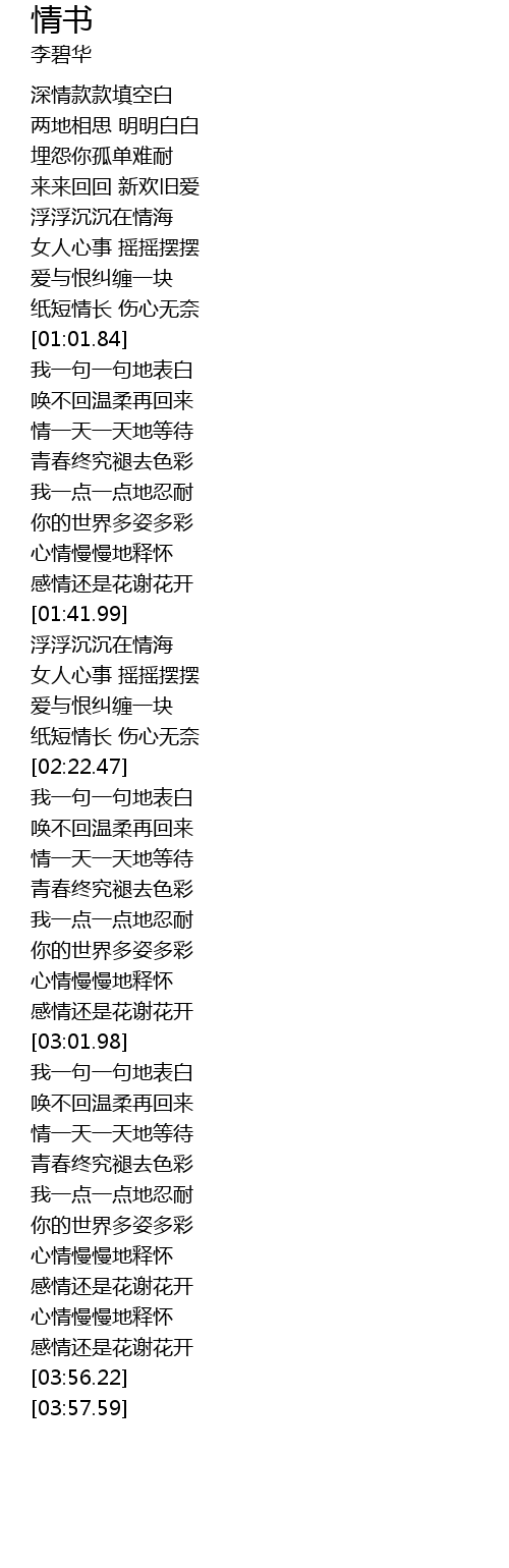 | [00:56.60] | 纸短情长 伤心无奈 |