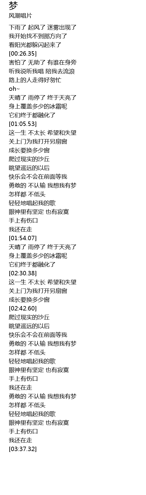 | [01:32.98] | 勇敢的 不认输 我想我有梦 |