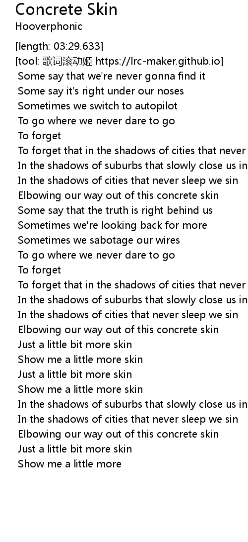 | [01:17.482] | Elbowing our way out of this concrete skin |