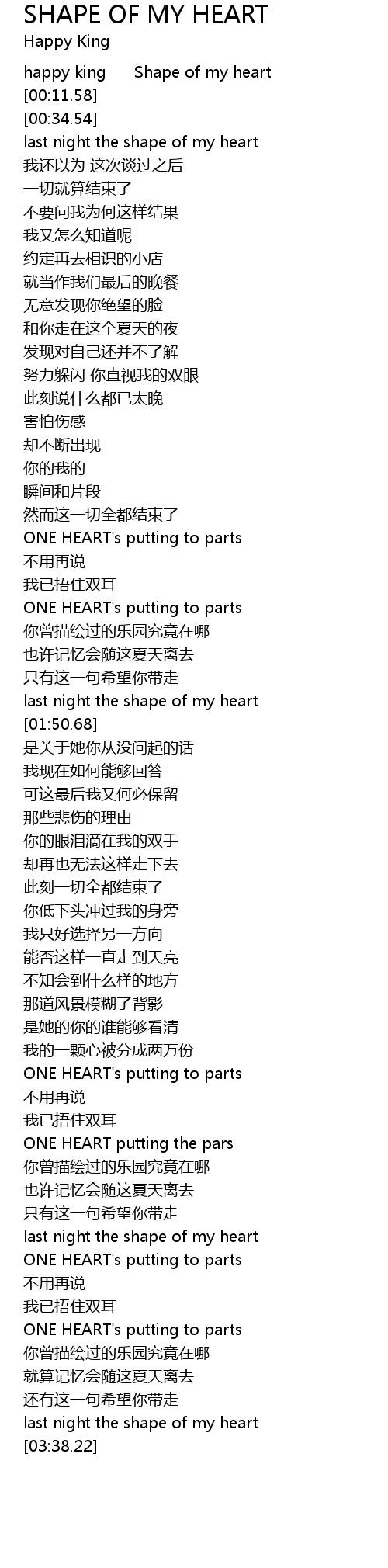 | [00:38.83] | last night the shape of my heart |