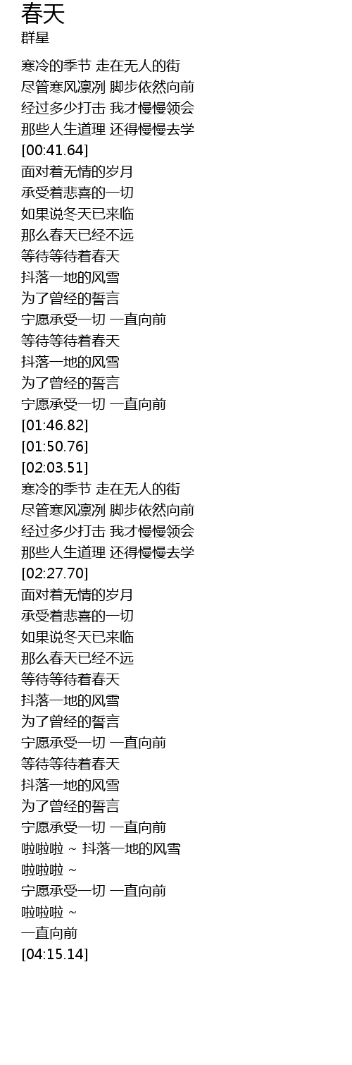 | [01:25.57] | děng dài děng dài zhe chūn tiān |