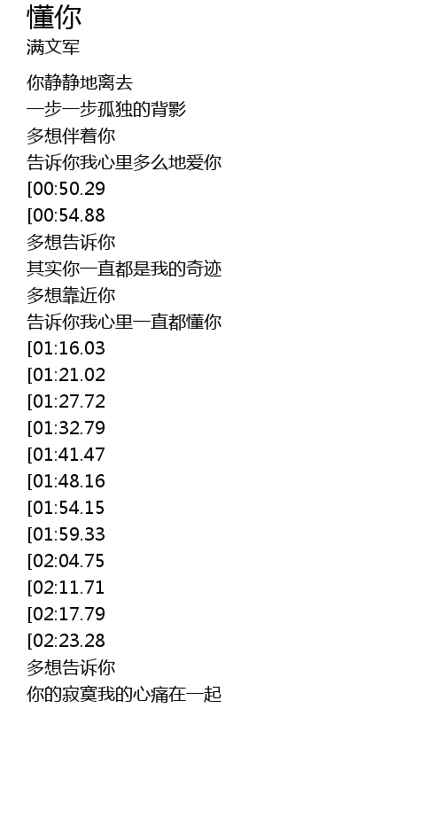 | [04:20.41][02:11.71] | 从此不知你心中苦与乐 |