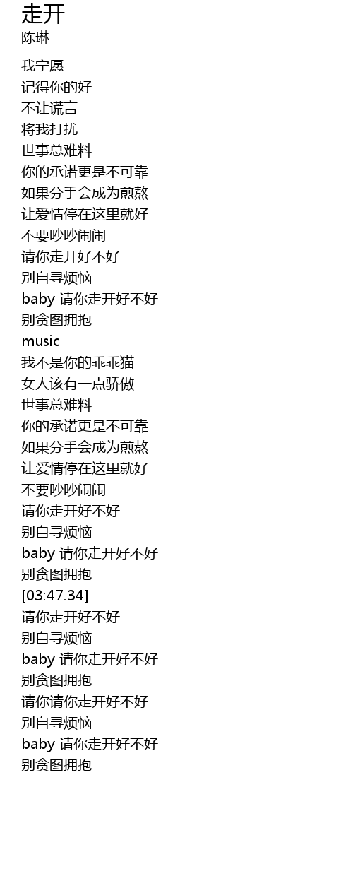| [01:34.39] | qing ni zou kai hao bu hao |