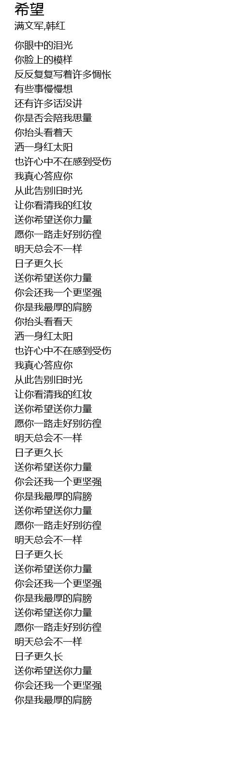 | [03:51.20] | sòng nǐ xī wàng sòng nǐ lì liàng |