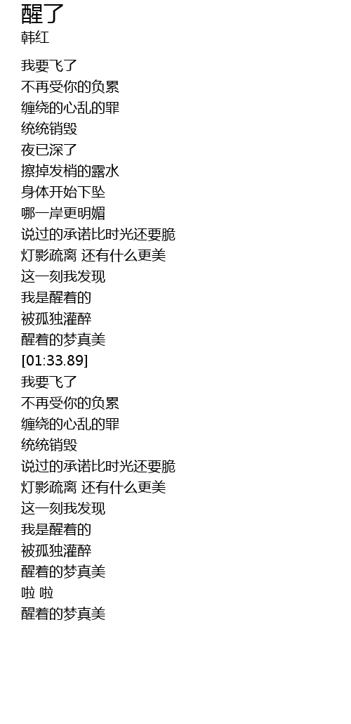 | [01:26.68] | 醒着的梦真美 |