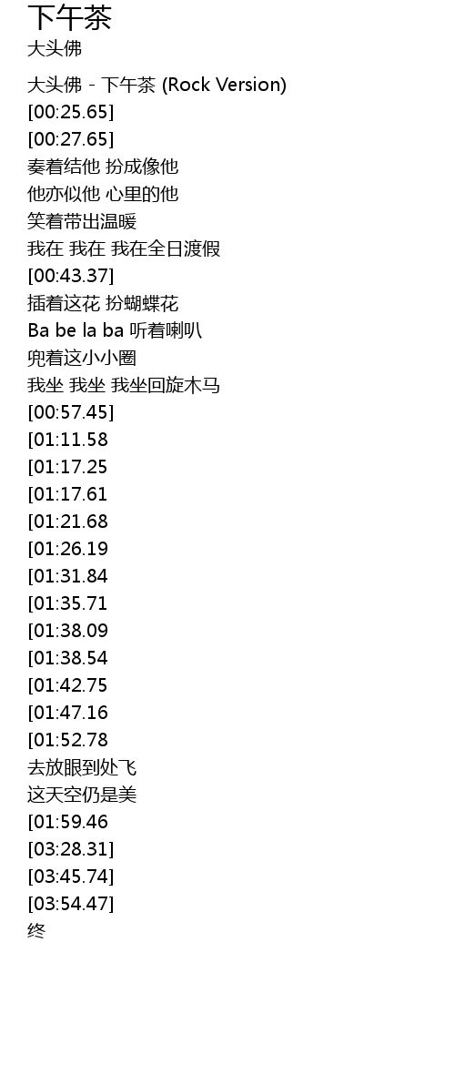 | [00:00.00] | 大头佛 - 下午茶 (Rock Version) |