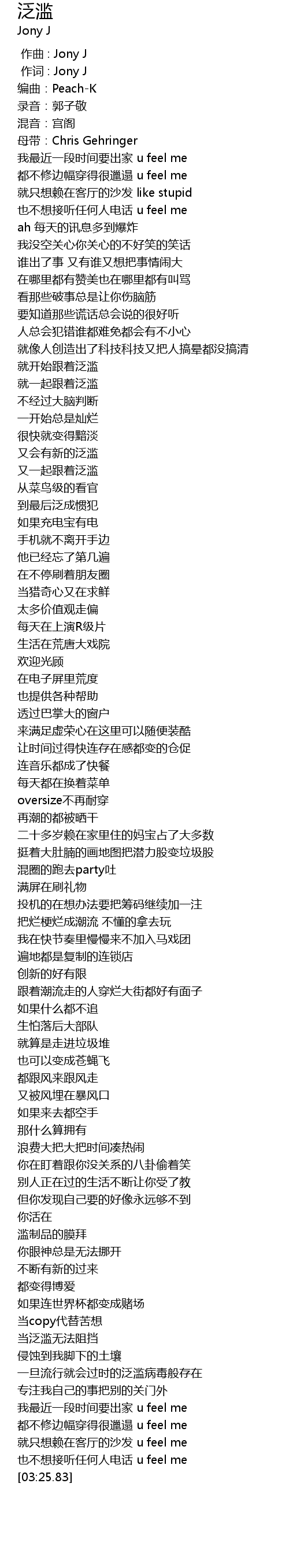 | [00:00.342] | 作词 : Jony J |