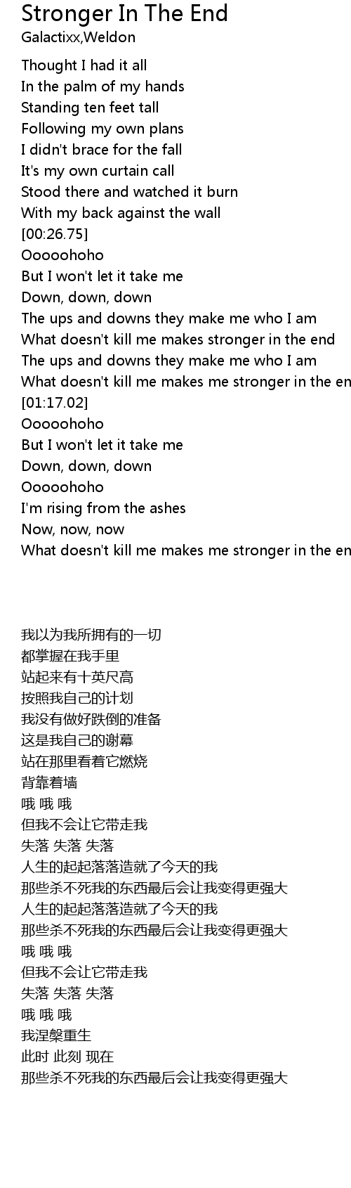 What doesn't kill me makes me stronger in the end |