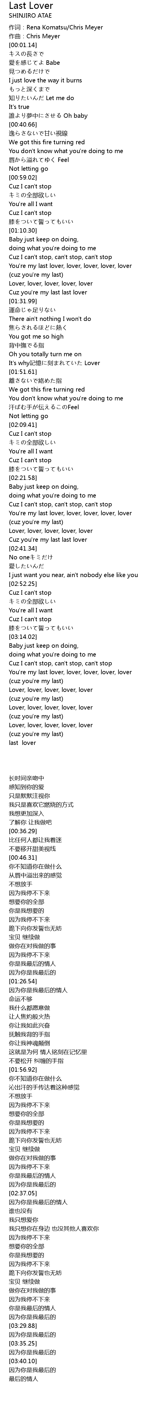 | [03:24.29] | You' re my last lover, lover, lover, lover, lover |