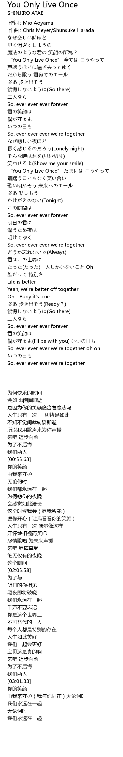 | [00:32.82] | “You Only Live Once” 全ては こうやって |