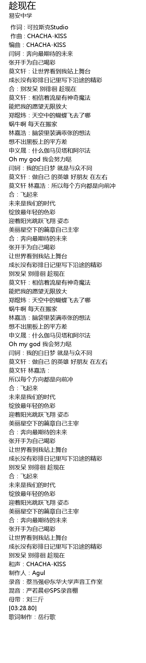 | [00:15.51] | 合:别发呆 别徘徊 趁现在 |