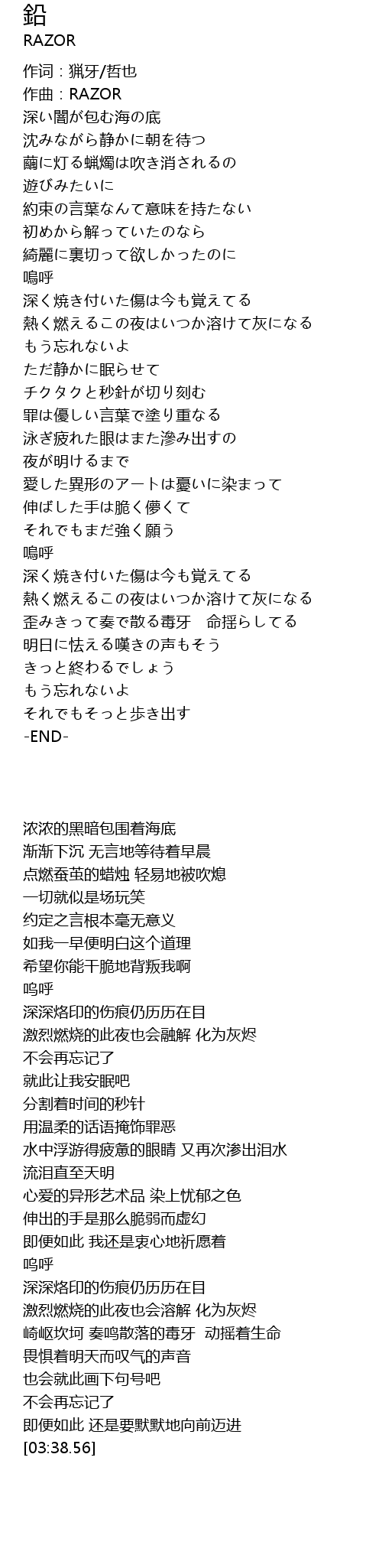 | [02:56.28] | 激烈燃烧的此夜也会溶解 化为灰烬 |