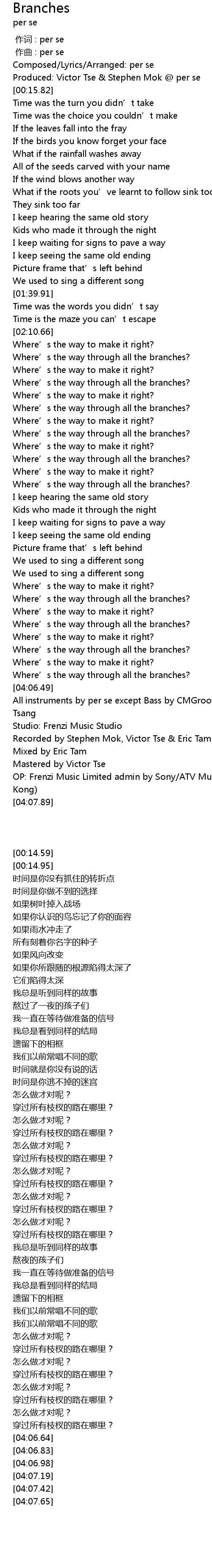 | [00:14.95] | Produced: Victor Tse & Stephen Mok @ per se |