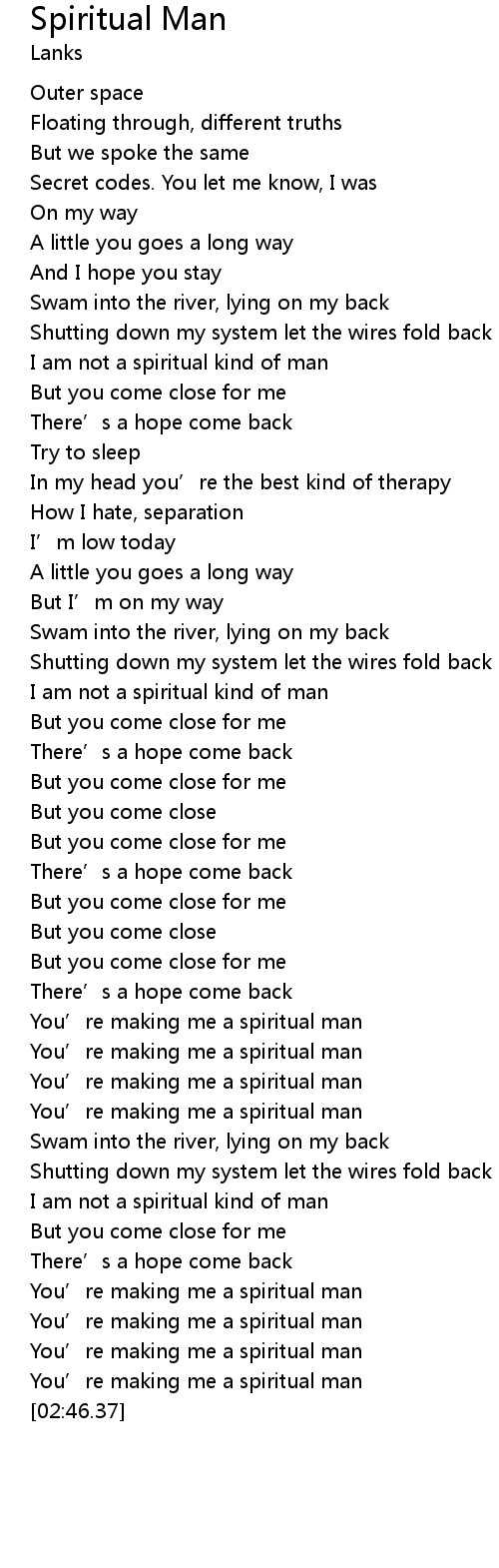 | [01:49.62] | You’re making me a spiritual man |