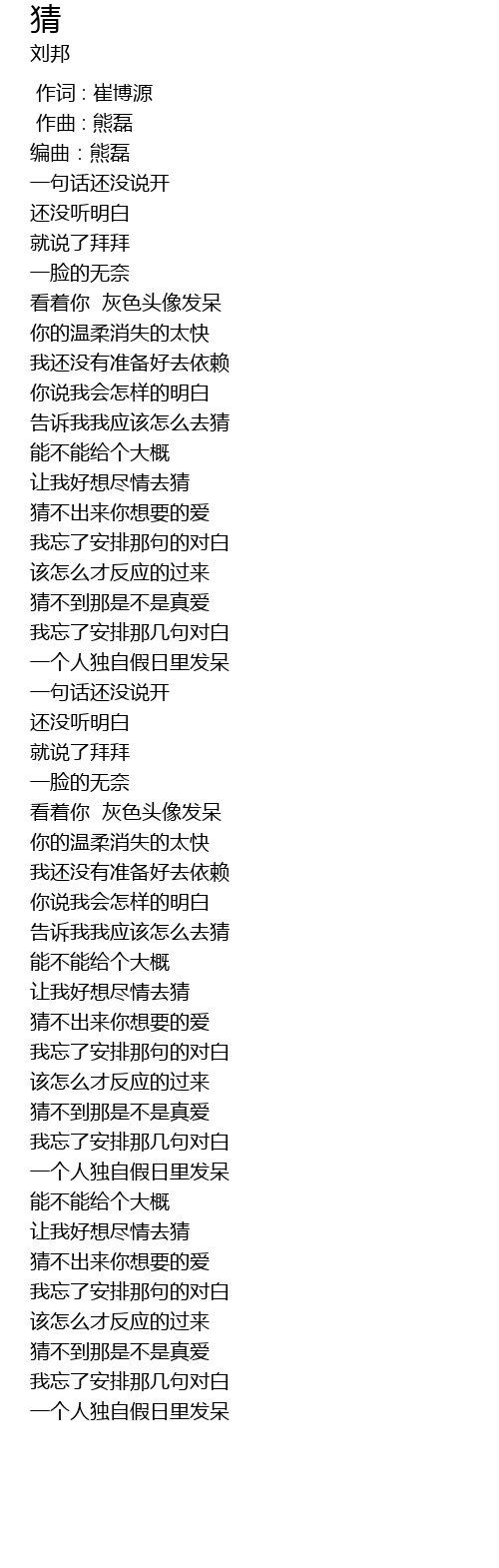 | [01:00.57] | 告诉我我应该怎么去猜 |