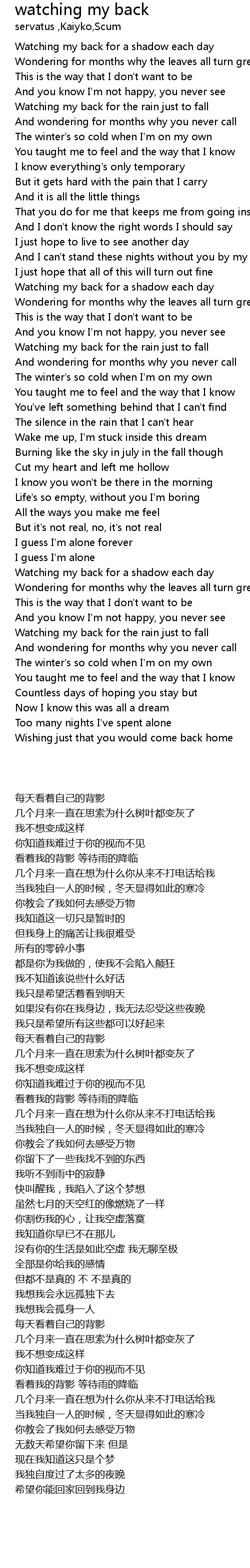 Watching my back for a shadow each day |