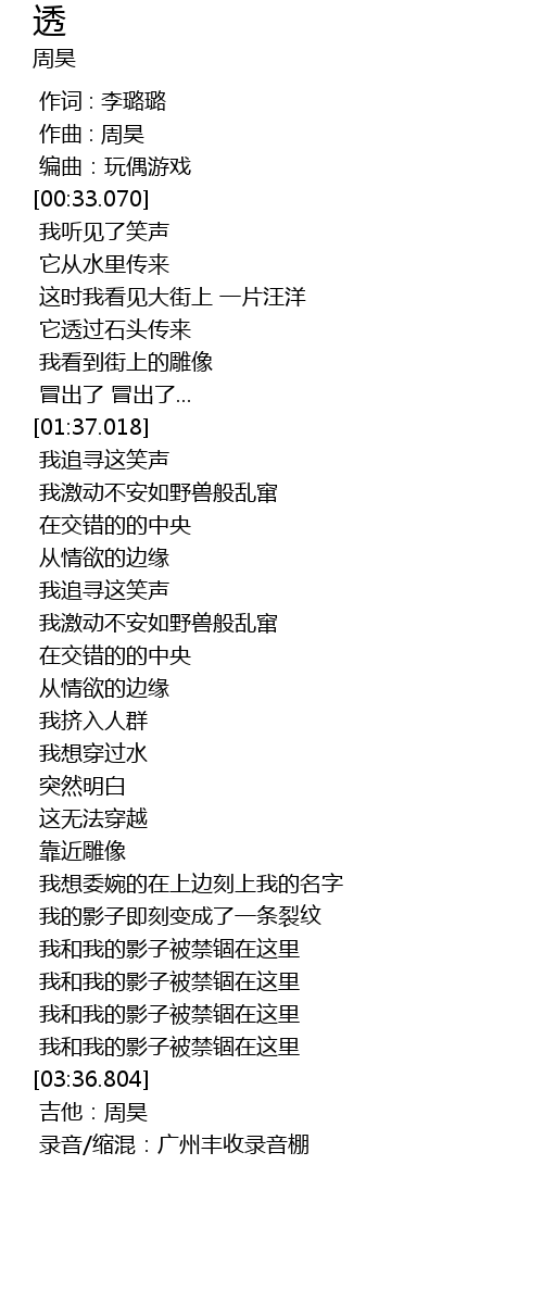 | [03:23.849] | 我的影子即刻变成了一条裂纹 |