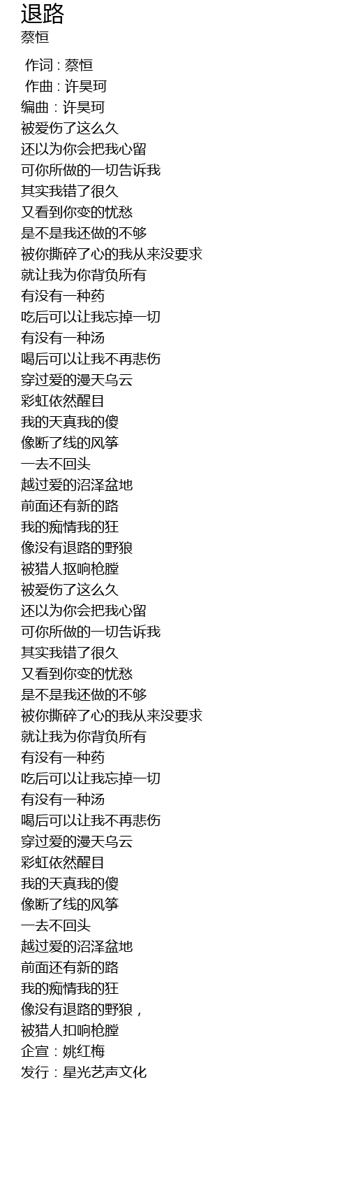 | [04:32.12] | 发行:星光艺声文化 |
