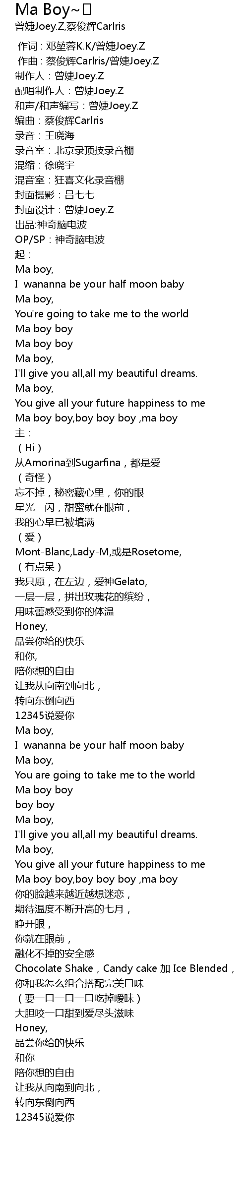 | [02:01.11] | Ma boy boy,boy boy boy ,ma boy |