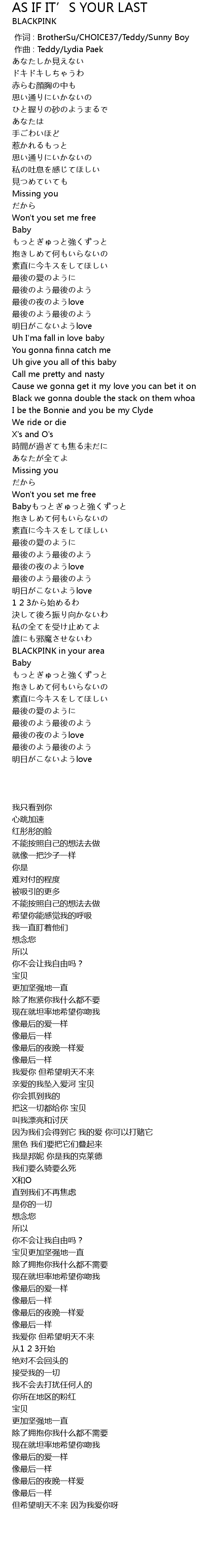 | 歌曲 | AS IF IT’S YOUR LAST |