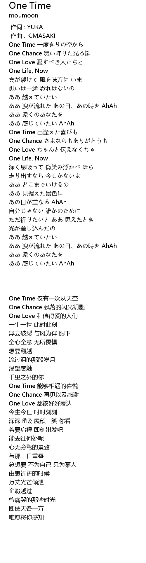 | [00:14.34] | One Chance 飘落的闪光钥匙 |