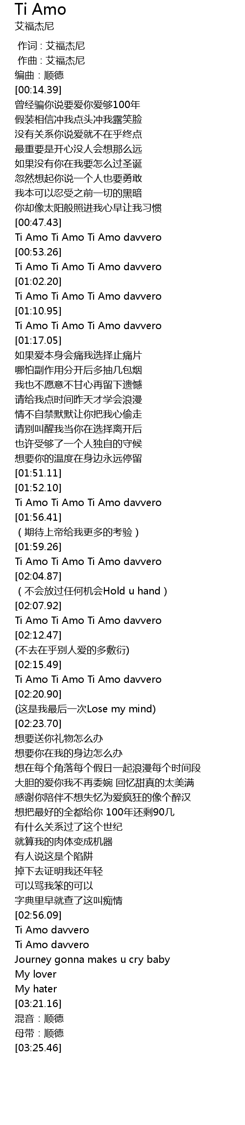 | [02:00.05] | Ti Amo Ti Amo Ti Amo davvero |