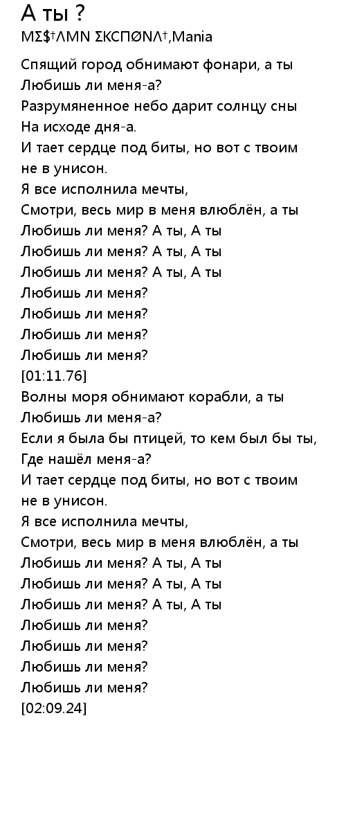 [01:42.11] Любишь ли меня? А ты, А ты