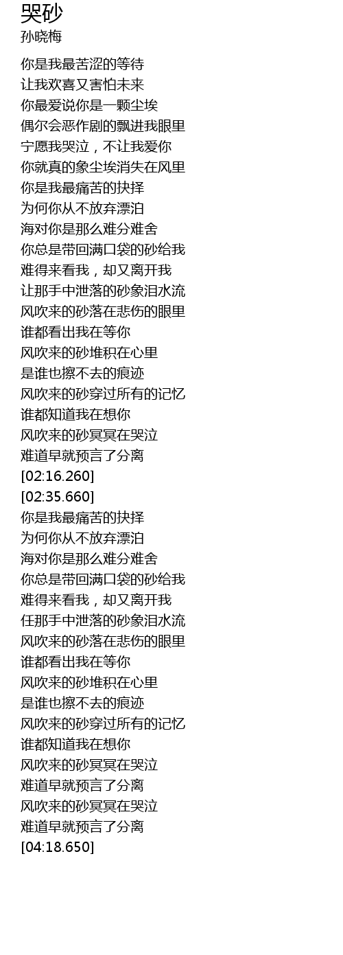 | [01:59.660] | fēng chuī lái de shā míng míng zài kū qì |