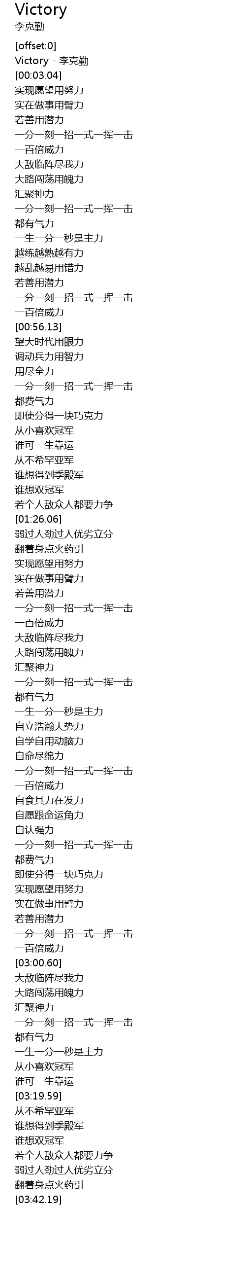 | [00:00.81] | Victory - 李克勤 |