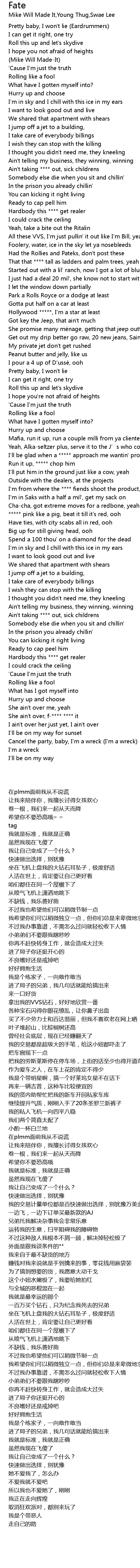 | 歌曲 | Fate |