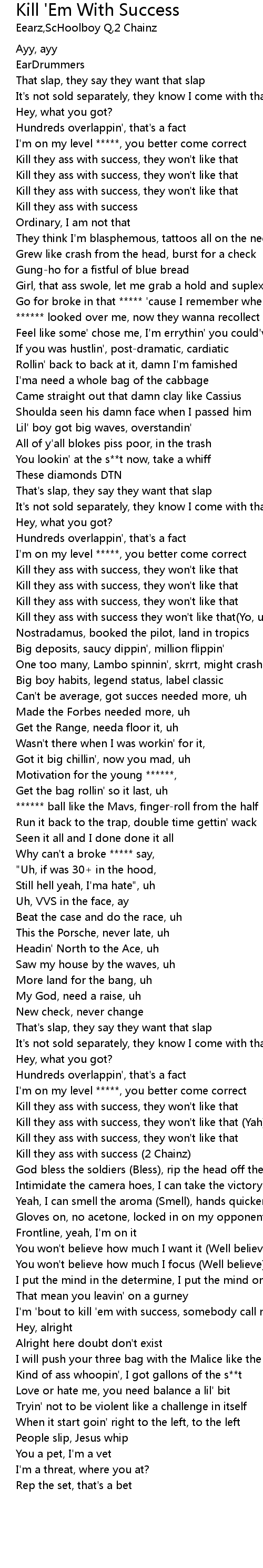 I'm 'bout to kill 'em with success, somebody call my attorney |