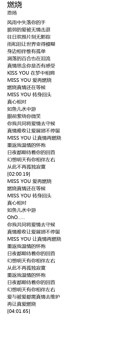 | [02:21.81] | MISS YOU 爱再燃烧 |