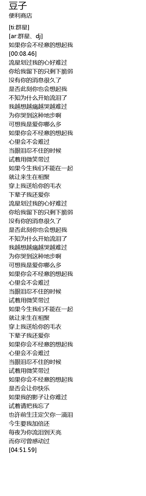 | [04:03.72] | rú guǒ nǐ huì bù jīng yì de xiǎng qǐ wǒ |