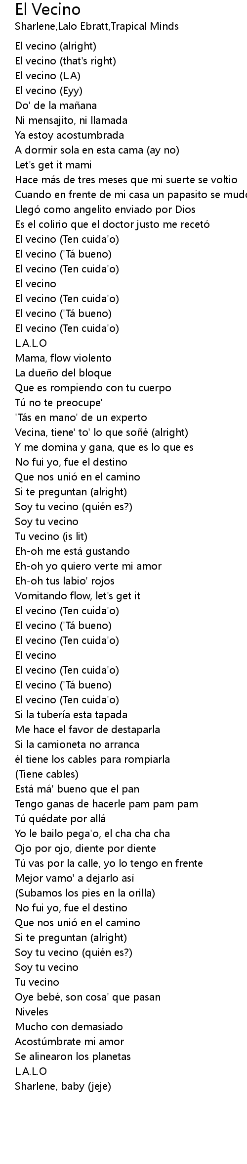 | [00:57.92] | Vecina, tiene' to' lo que soé alright |