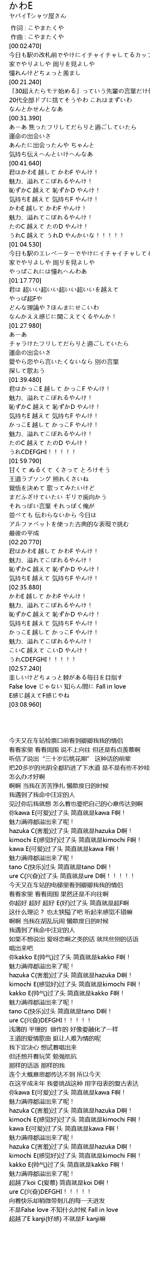 | [02:36.740] | kawa E(可爱)过了头 简直就是kawa F啊! |