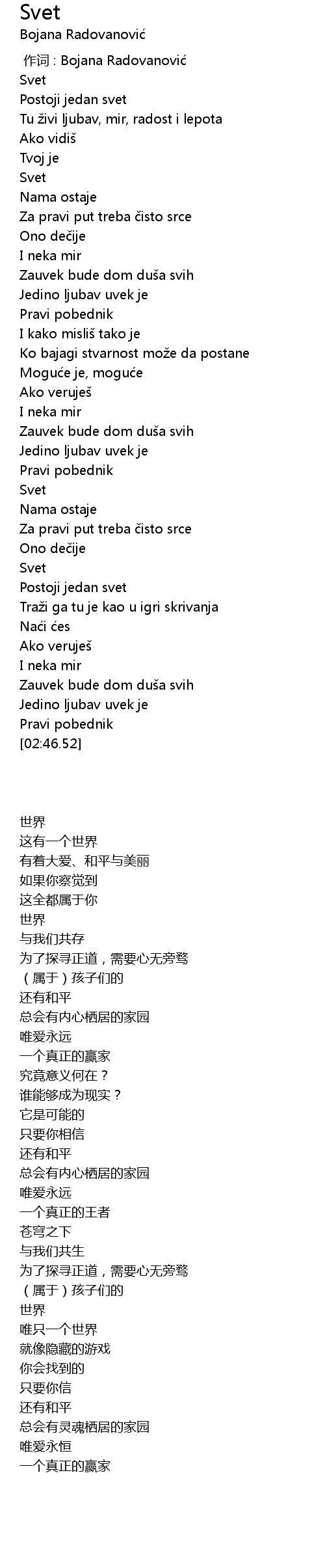 | 歌曲 | Svet |