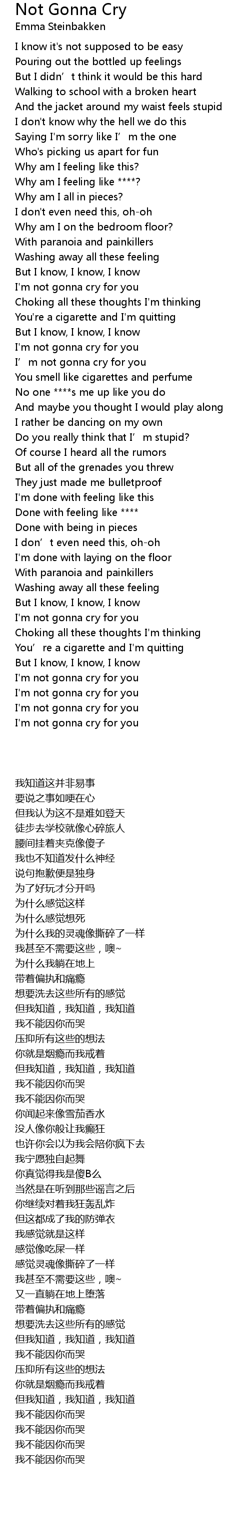 | 歌曲 | Not Gonna Cry |