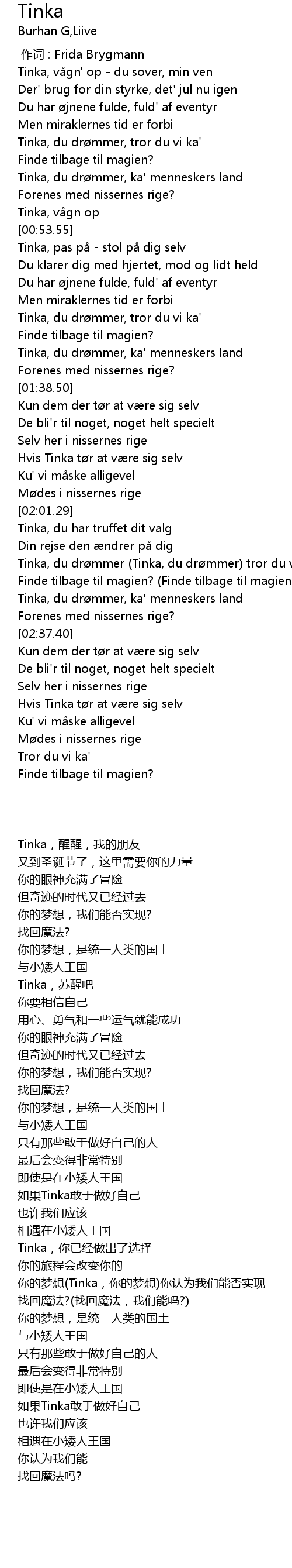 | [02:28.08] | Tinka, du dr mmer, ka' menneskers land |