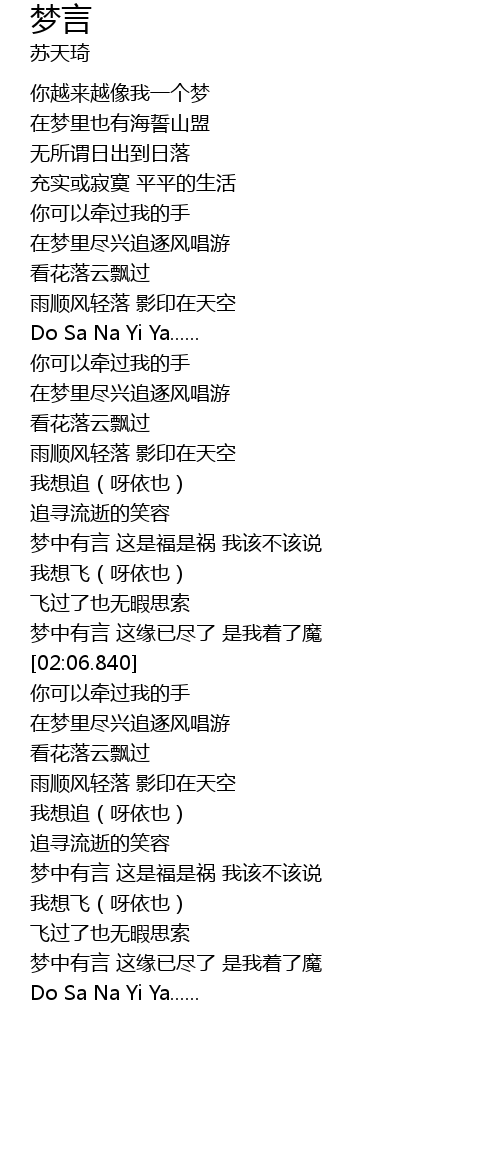 | [01:55.860] | mèng zhōng yǒu yán zhè yuán yǐ jǐn le shì wǒ zhe le mó |