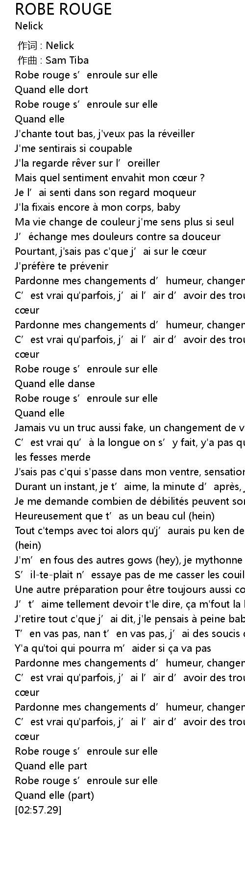 | [02:49.99] | Robe rouge s' enroule sur elle |