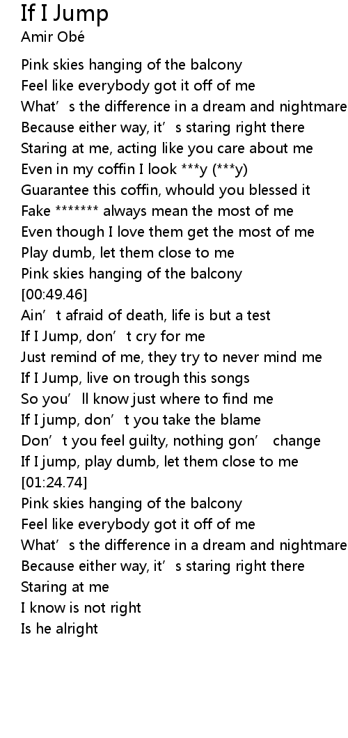 | [01:02.76] | If I Jump, don' t cry for me |