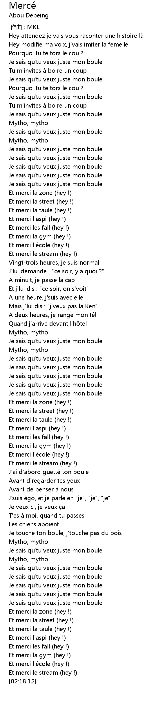 | [02:02.85] | Et merci la zone (hey !) |