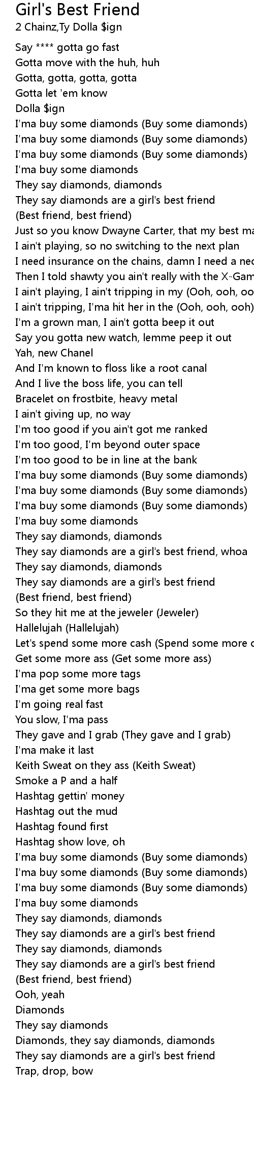They say diamonds are a girl's best friend, whoa |