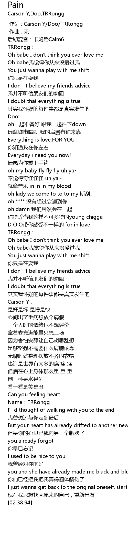 | [00:01.000] | 作词 : Carson Y/Doo/TRRongg |
